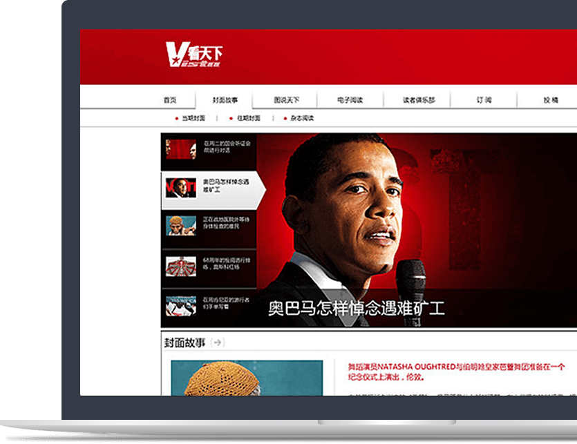 网站与杂志相辅相成,设计风格上有异曲同工之妙。同时通过订阅功能和微博同步窗口,帮助《看天下》更便利的“说新闻,讲故事”,进一步扩大在主流