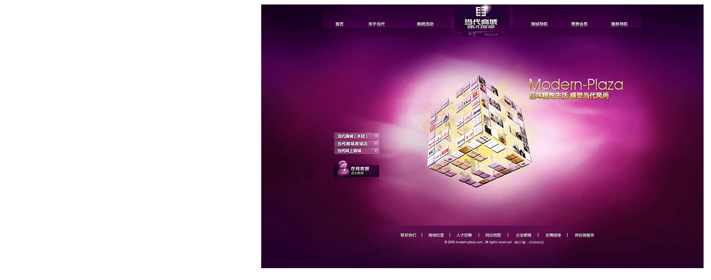 网站整体以时尚、简约和前卫为主体风格,和当代商城“品牌立店,前卫经营”