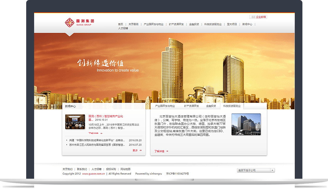 网站整体稳重大气,简洁干净,成功塑造了国测集团多元化的互联网品牌形象