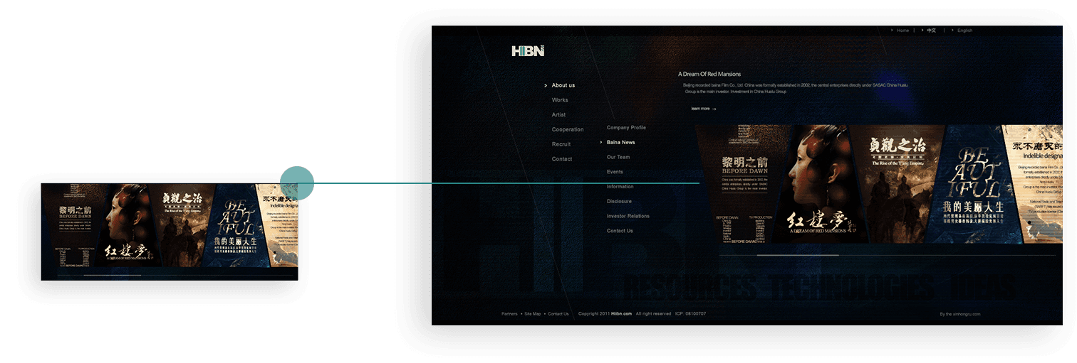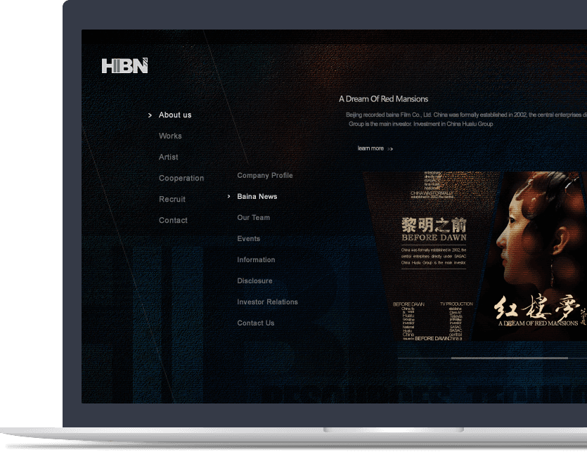 D体育(中国)·官方网页版banner进行艺术化创作,通过轮播切换的方式展示华录百纳的知名作品,以作品带动品牌,强化企业品牌价值