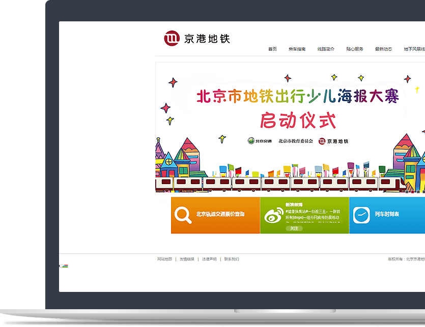 网站整体清新活泼、用色明亮,呈现品牌活力。同时,网站实现路线时时查询功能