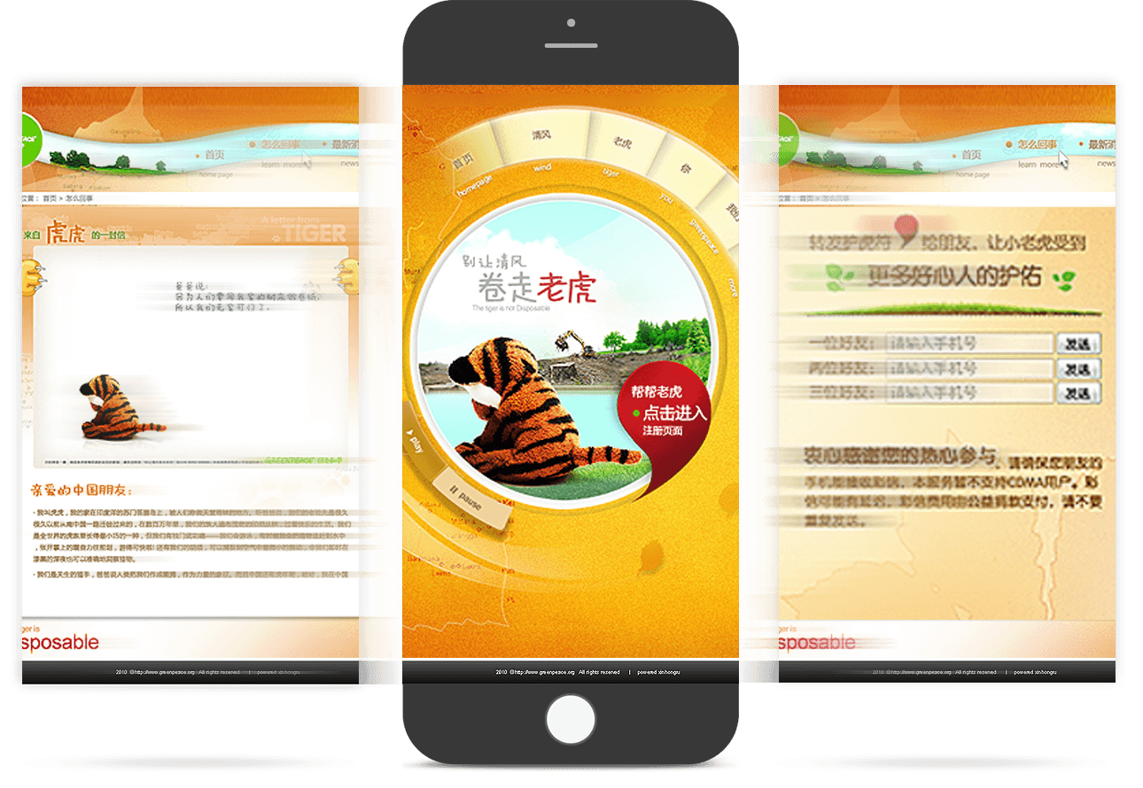 绿色和平网站举办《别让清风卷走老虎》等多个线上公益活动,吸引用户参与。D体育(中国)·官方网页版长期负责其网站的维护和运营推广工作,保障网站稳定、有效运行。