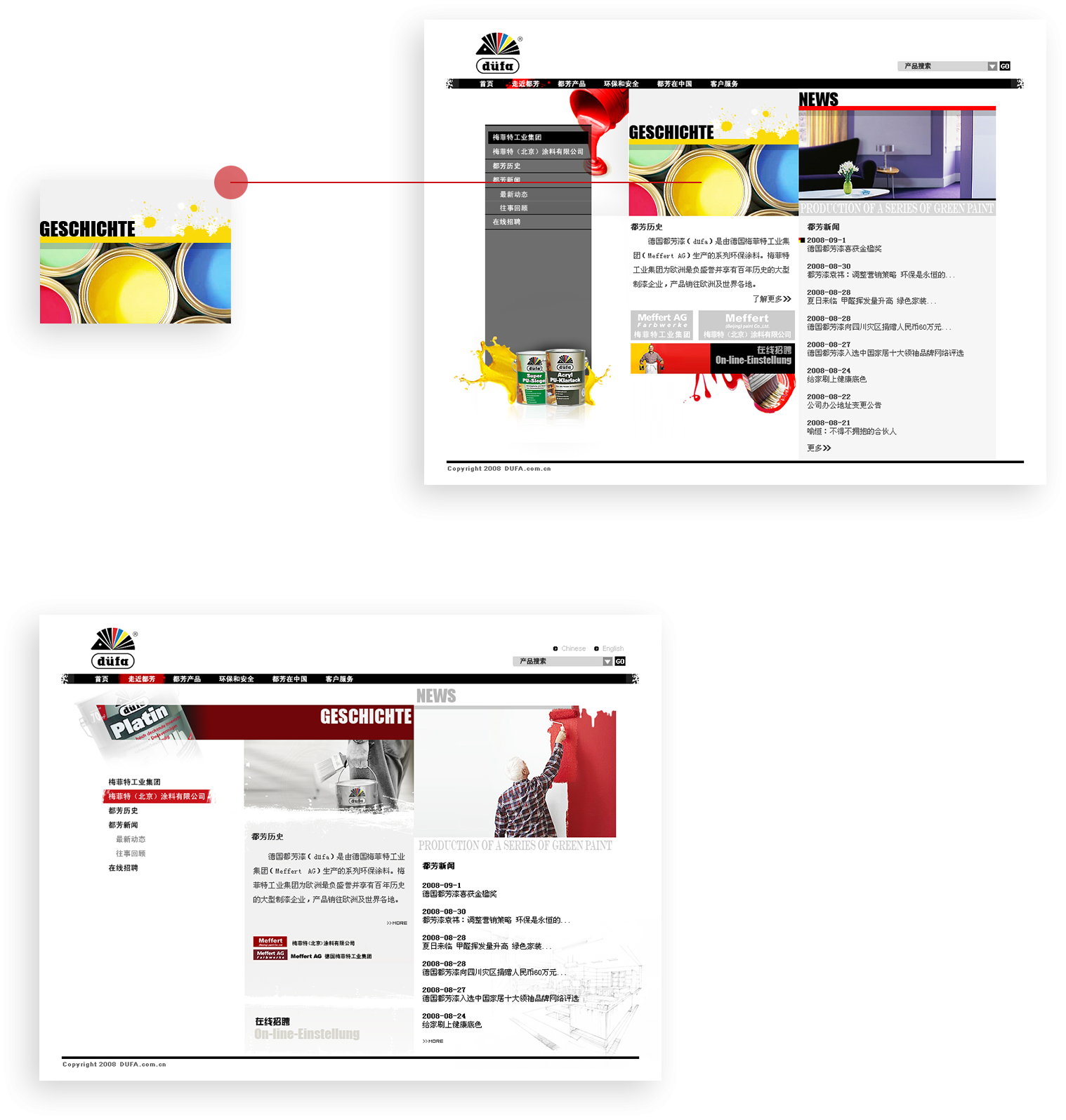 中文官网秉承都芳漆的品质和理念,力求做到简洁、明快。 整体设计风格与集团网站相呼应,同时尊重中国大众审 美习惯,表现出中国区官网的独特个性和魅力。