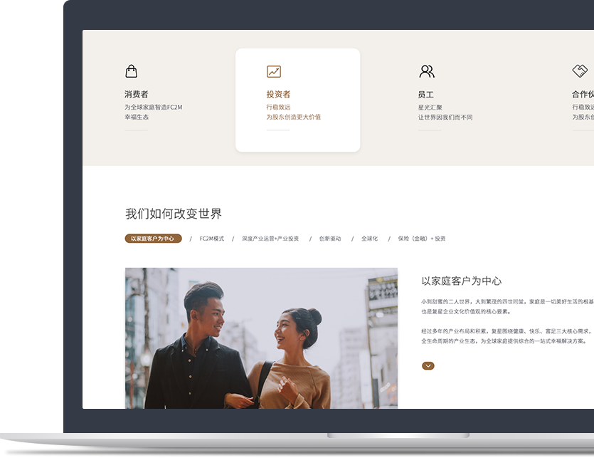 创立于1992年,复星深耕健康、快乐、富足、智造四大板块,为全球家庭客户 提供高品质的产品和服务。