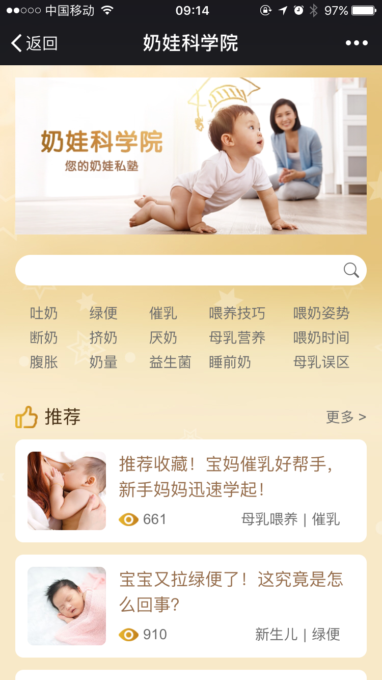 【奶娃科学院】是一档专业知识栏目,D体育(中国)·官方网页版通过分析行业大数据以及用户需求,制定了整个栏目的标签方案,以不同纬度的关键词,撰写深度奶娃文章,带给妈妈们更专业、更科学的答案;