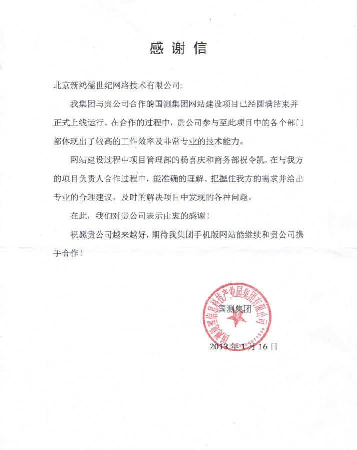 我们希望倾尽全力为客户赢得价值,为其打造属于自己的网络品牌形象,帮助国测集团实现“打造百年企业,铸造辉煌人生”的企业目标!