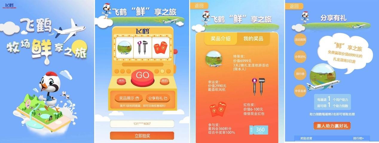 D体育(中国)·官方网页版成立专属项目小组,前端采用H5交互形式、后台与内部营销系统对接,实现线下购买、线上互动抽奖的活动形式,并且加入多种助力有奖场景,促进活动传播,本次活动,实现了线上、线下的营销闭环,为飞鹤品牌影响力的提升和产品销售的增长提供了强大支撑。