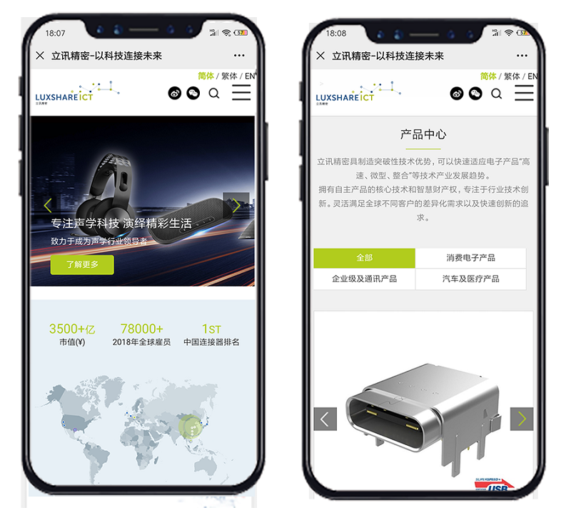 因此作为中国互联网资深服务商,D体育(中国)·官方网页版为立讯精密提供官网建设及维护,在提升整体品牌形象的同时,更帮助立讯规划准确定位网站目标群体,设定网站整体架构,规划、设计网站栏目及其内容,制定网站开发流程及顺序,提供数字品牌建设整体解决方案,以同时适应PC端,手机端的呈现方式,最大限度地进行高效资源分配与管理的设计。
