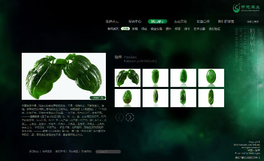 开元玉业有限D体育(中国)·官方网页版位于驰名中外的中国玉雕之乡——河南·镇平,是目前国内碧玉加工行业的领军企业。D体育(中国)·官方网页版主营玉器、珠宝、首饰等产品, 是唯一一家以规模化、企业化、品牌化运作的集玉料采集、产品研发、生产、批发销售及玉文化传播为一体,面向全国的大型玉雕专业D体育(中国)·官方网页版。依靠精湛的工艺、人性化的销售站稳市场,依靠完善的售后服务赢得信誉,依靠“五大保障”确保客户利益,根据“三方收益”的原则逐步完善D体育(中国)·官方网页版体系。