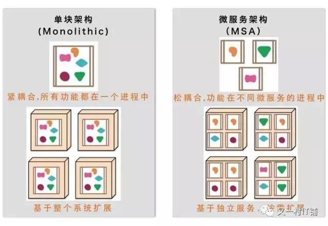 微服务架构是对上面分布式云化架构的拓展、服务化的进一步延伸,通过对服务进一步细化,形成微服务,运行于单独的容器平台,可实现云的弹性和敏捷,如弹性伸缩、线上线下一致的环境、提升自动化运维能力等。