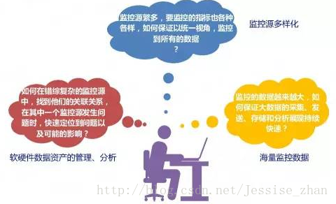 软硬件数据资源的管理分析挑战 数据是采集到了,采集全了,那么如何对他们进行分析呢?应用、系统软件和运行环境、网络、存储设备的关联关系是否能准确体现呢,某个点发生了故障、问题影响的链路是否能快速找到并进行处理呢?监控离不开和软硬件资源管理的结合。